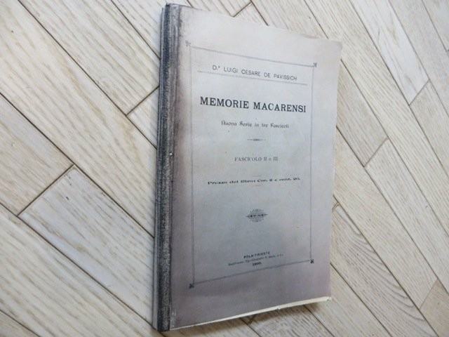Luigi Cesare De Pavissich: Memorie MacarensiNuova serie in tre fascicoli Stranica: 260Dimenzije: 17x24.5Jezik: Pula - TrstPismo: LatinicaStanje: Vrlo dobroUvez: MekiGodina: 1900