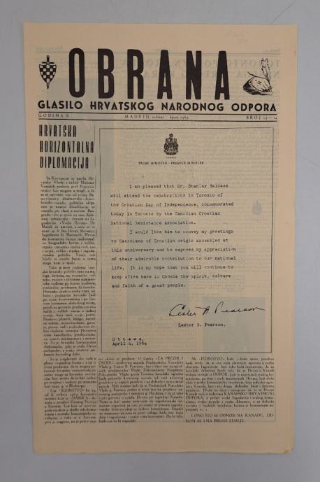 Obrana br. 13-14/1964.Glasilo Hrvatskog Narodnog OdporaUrednik: pukovnik DomagojStranica: 16Dimenzije: 25x40Jezik: MadridPismo: LatinicaStanje: Vrlo dobroUvez: MekiGodina: 1964