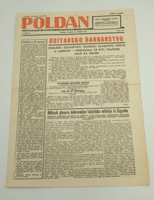 Poldan br. 110/1942.Glavni urednik: Josip BlažinaStranica: 4Dimenzije: 28x39Jezik: ZagrebPismo: LatinicaStanje: OdličnoUvez: MekiGodina: 1942