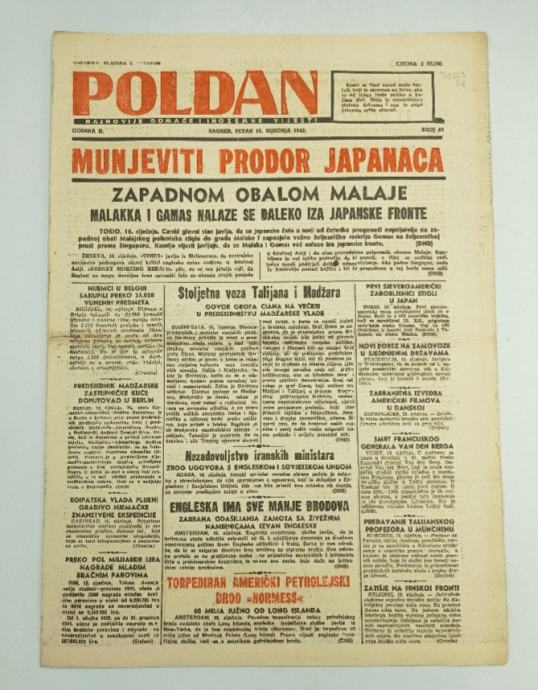 Poldan br. 49/1942.Glavni urednik: Josip BlažinaStranica: 12Dimenzije: 28x39Jezik: ZagrebPismo: LatinicaStanje: OdličnoUvez: MekiGodina: 1942