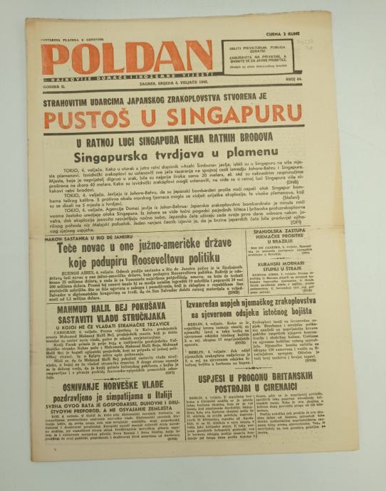 Poldan br. 64/1942.Glavni urednik: Josip BlažinaStranica: 12Dimenzije: 28x39Jezik: ZagrebPismo: LatinicaStanje: OdličnoUvez: MekiGodina: 1942
