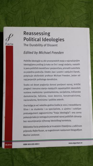 Ova knjiga je već nekoliko godina (izašla je 2001.) nezaobilazno štivo i za studente i za specijaliste, a ujedno i ozbiljan protuargument zagovornicima "kraja ideologija": ona zorno pokazuje kako je nemoguće promatrati razvoj političkih zbivanja bez razumijevanja njihovog ideološkog konteksta.