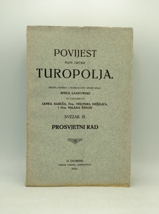Emil Laszowski: Povijest plem. općine Turopolja IIIProsvjetni rad Stranica: 283Dimenzije: 16.5x24.5Jezik: ZagrebPismo: LatinicaStanje: DobroUvez: MekiGodina: 1924