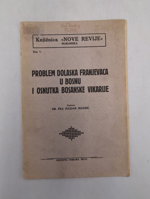 Julijan Jelenić: Problem dolaska franjevaca u Bosnu i osnutka bosanske VikarijePreštampano iz "Nove Revije", 1926, br. 3- 4.Stranica: 27Dimenzije: 15.5x23Jezik: SplitPismo: LatinicaStanje: Vrlo dobroUvez: MekiGodina: 1926