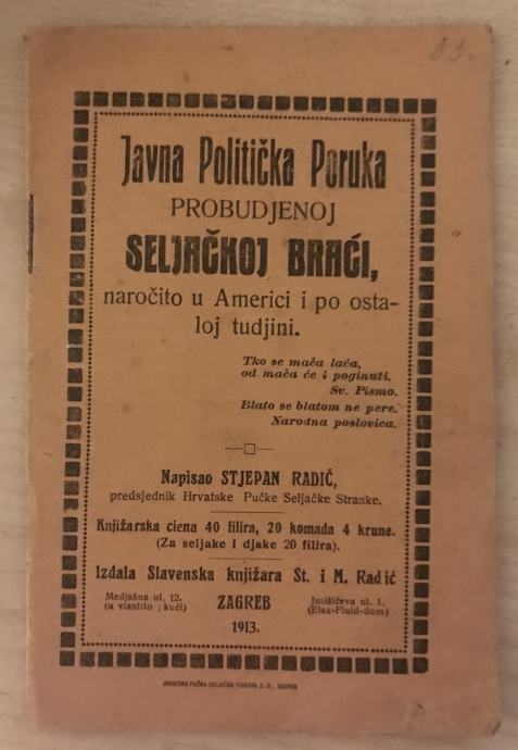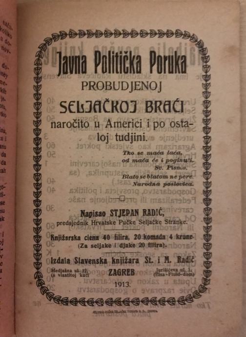 Radić,Stjepan:Javna politička poruka probudjenoj seljačkoj braći