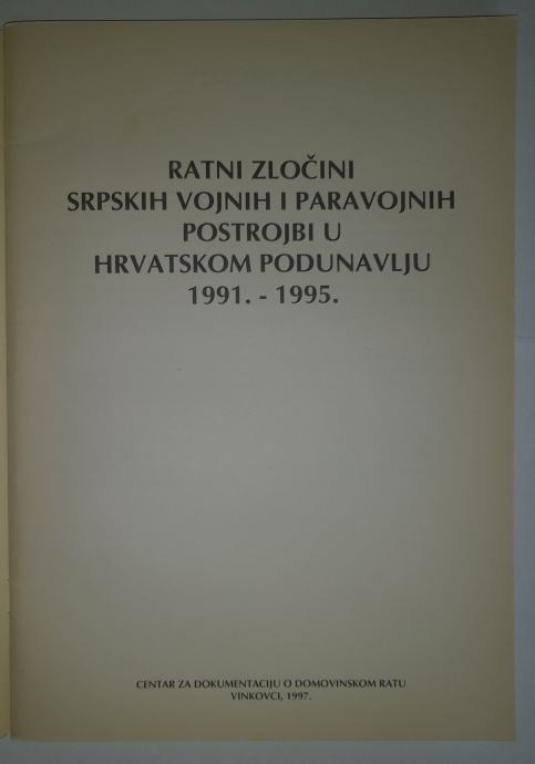 RATNI ZLOČINI SRPSKIH VOJNIH I PARAVOJNIH POSTROJBI U HRVATSKOM PODUNAVLJU 1991.-1995,MEKI UVEZ DOBRO OČUVANA