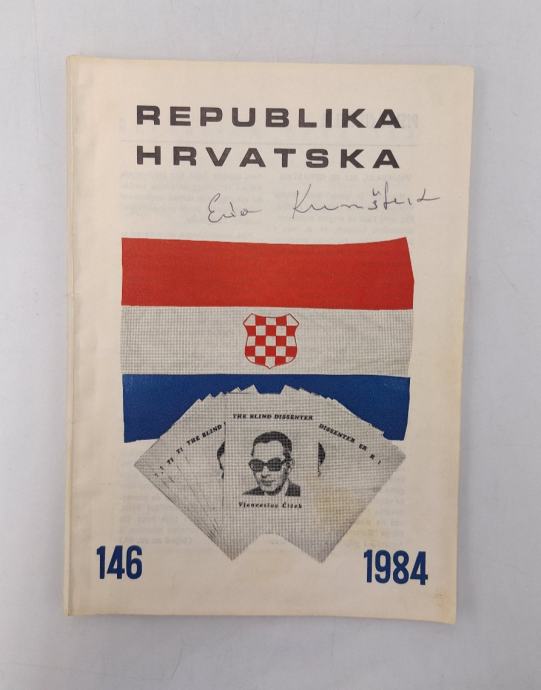 Republika Hrvatska br. 146/1984.Odgovorni urednik: Carlos Juan L. Korsky (Ivo Korsky)Tromjesečni časopisDr. Ivo Korsky, hrvatski politički pisac i političar, bio je dugogodišnji predsjednik Hrvatske republikanske stranke u emigraciji. Godinama je uređivao časopis “Republika Hrvatska”. Bio je jedan od najvažnijih hrvatskih emigrantskih pisca. Rođen je 1918. u Osijeku u obitelji židovskog podrijetla, uspio je izbjeći bleiburški pokolj, a umro je 2004. godine u Buenos Airesu. <br><br>Stranica: 81<br>Dimenzije: 14x19.5<br>Jezik: Buenos Aires<br>Pismo: Latinica<br>Stanje: Vrlo dobro<br>Uvez: Meki<br>Godina: 1984<br>