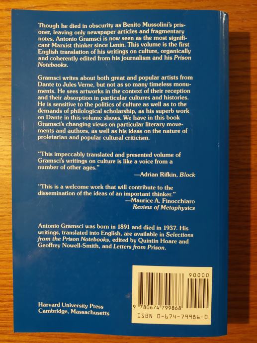 Iako je umro kao zarobljenik Benita Mussolinija, ostavivši samo novinske članke i fragmentarne bilješke, Antonio Gramsci danas se smatra najznačajnijim marksističkim misliocem nakon Lenjina. Ovaj je svezak prvi engleski prijevod njegovih spisa o kulturi, organski i koherentno uređenih iz njegova novinarstva i njegovih Zatvorskih bilježnica .