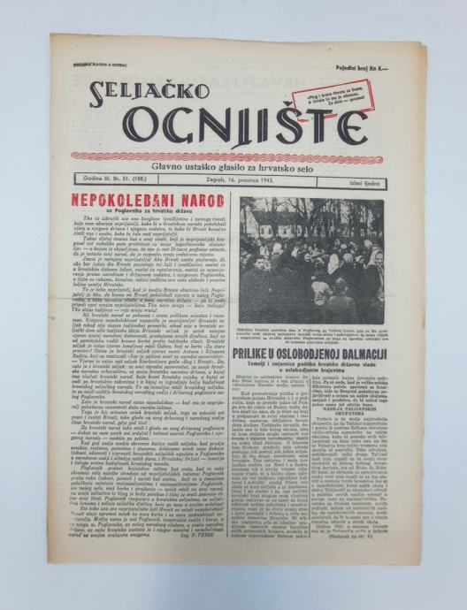 Seljačko ognjište br. 51/1943.Glavno ustaško glasilo za hrvatsko seloOdgovorni urednik: Nikola KiriginStranica: 12Dimenzije: 28.5x40Jezik: ZagrebPismo: LatinicaStanje: DobroUvez: MekiGodina: 1943