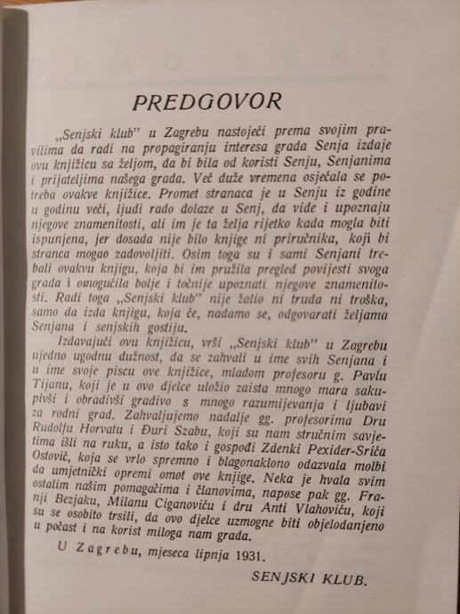 - Izdavač : "Senjski klub" u Zagrebu , 1931.