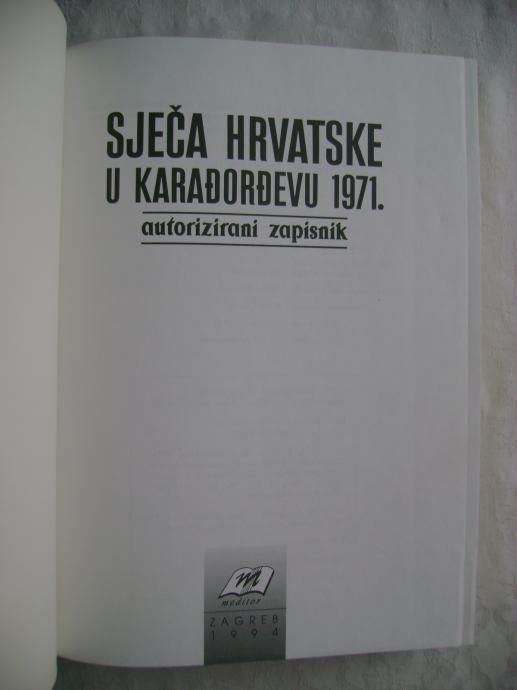 Sječa Hrvatske u Karađorđevu 1971. - autorizirani zapisnik, izdavači Meditor i Meteor film, Zagreb 1994. godine, 17 x 23 cm, tvrdi uvez, 363 stranice.
