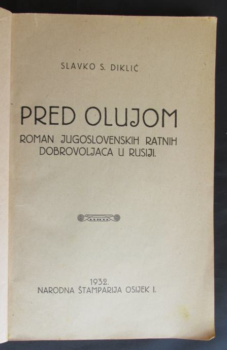 Slavko S. Diklić - PRED OLUJOM, ROMAN, OSIJEK 1932.g.