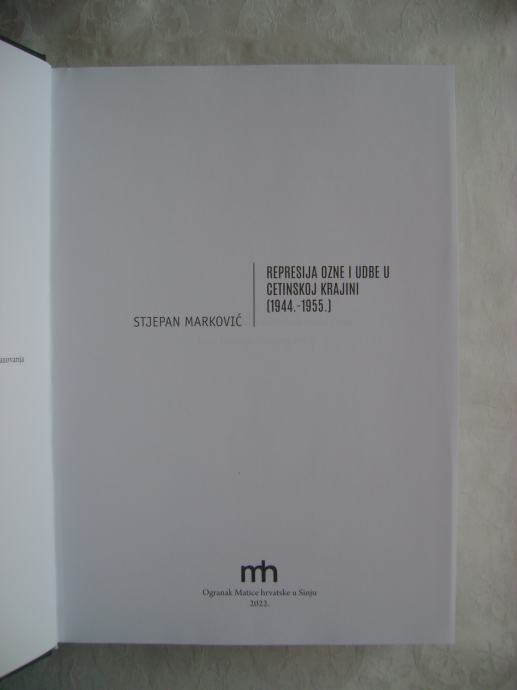 Stjepan Marković - Represija OZNE i UDBE u Cetinskoj krajini 1944.-1955. - izdavač Ogranak Matice hrvatske u Sinju, 2022. godine, 18 x 25 cm, tvrdi uvez, 559 stranica, ilustrirano, naklada 500 primjeraka.