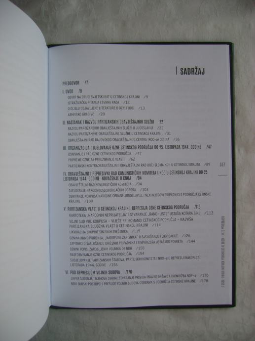"Marković je istaknuo da se u knjizi, između ostalog, nalaze poglavlja o likvidacijama svećenika i drugih osoba, obrađena je tema koja govori o događanjima 1948. godine (Informbiro), kao i popis pripadnika i suradnika OZNE i UDBE iz Cetinske krajine, te onih koji su po nalogu istih pogubljeni."