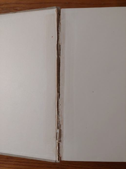 Spoj prednje i stražnje korice sa blokom nije skroz u originalnoj formi , vidljivo platno s hrpta (prikazano na fotografijama)