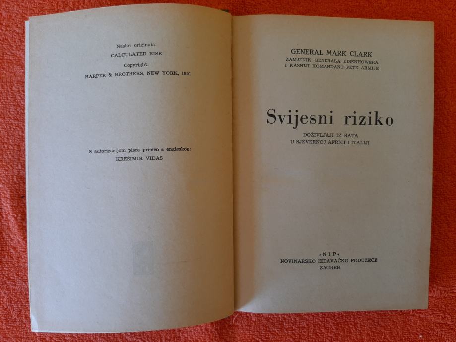 Ratni memoari vrhovnog zapovjednika savezničkih četa za osvajanje Italijegenerala Clarka, zamjenika generala Eisenhowera.