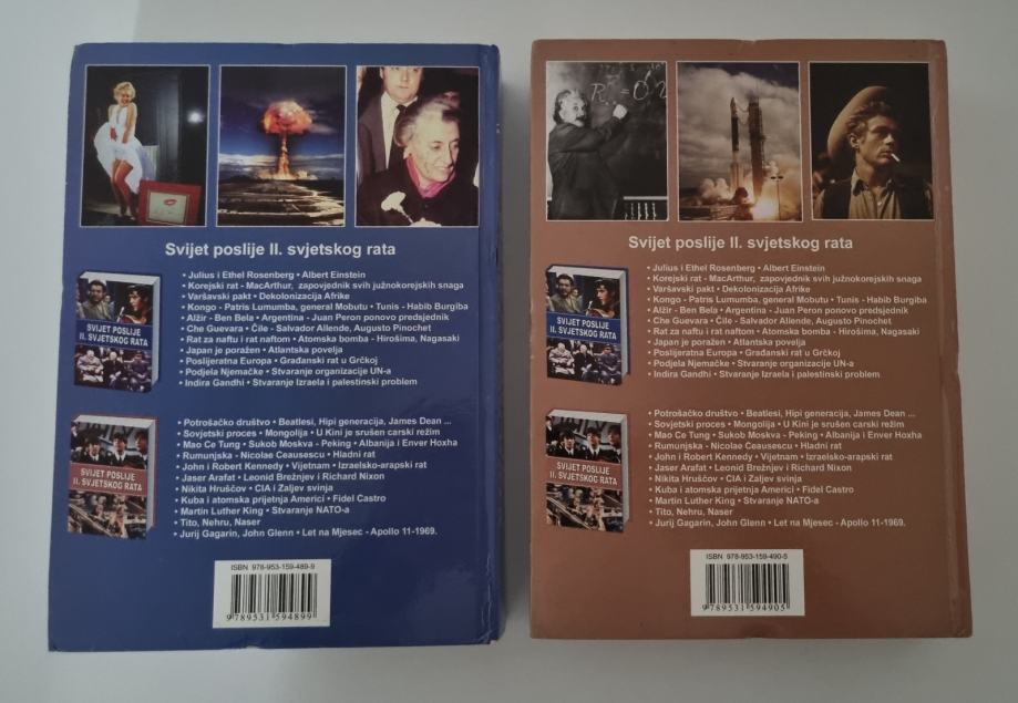 Prodajem knjige Svijet poslije II. svjetskog rata u izdanju Marjan tisam, tvrdi uvez. Knjige su u veoma dobrom stanju (izuzev sitnih mrlja od stajanja), nikad čitane. Za dodatne slike i upite, slobodno se javite. Šaljem Tiskom, paketomatom ili poštom, kupac plaća poštarinu. Moguće i osobno preuzimanje: Lepoglava, Ivanec, Varaždin.