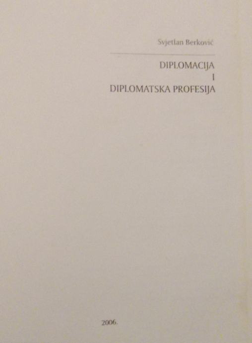 Svjetlan Berković: Diplomacija i diplomatska profesija.