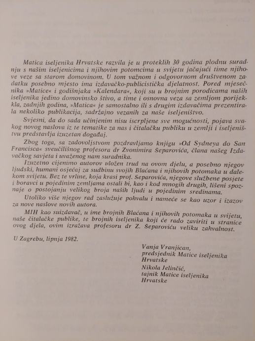 Od SYDNEYA do SAN FRANCISCA - Zvonimir ŠEPAROVIĆ /Urednik : Nada CESAR