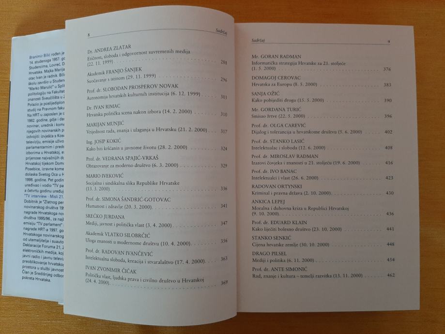 TV interview, misli 21. stoljeća - Branimir Bilić i sugovornici