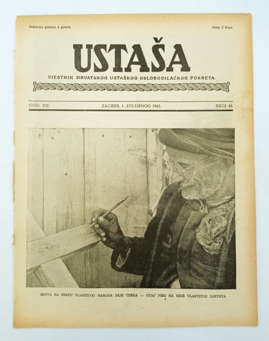 Ustaša br.44/1942Viestnik hrvatskog ustaškog oslobodilačkog pokretaStranica: 16Dimenzije: 23x32Jezik: ZagrebPismo: LatinicaStanje: OdličnoUvez: MekiGodina: 1942