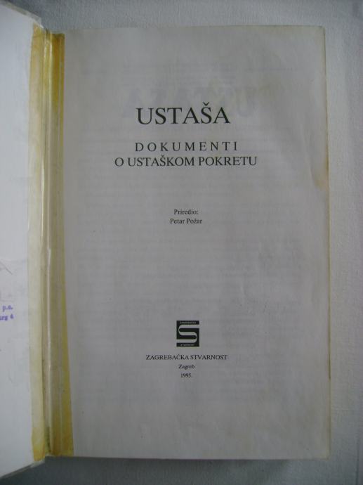 Ustaša – Dokumenti o ustaškom pokretu - izdavač Zagrebačka stvarnost, Zagreb 1995. godine, 16 x 24 cm, tvrdi uvez, 360 stranica, ilustrirano.