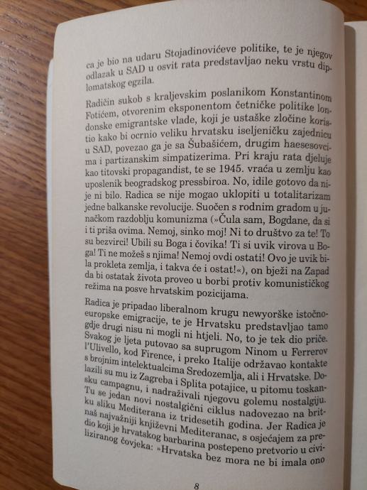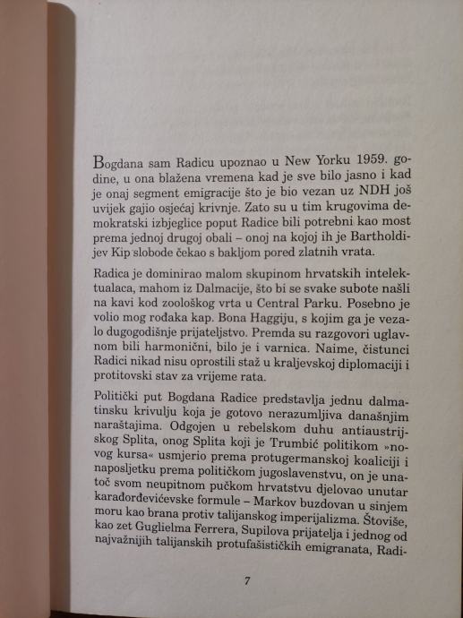 Radica, Bogdan, hrvatski publicist (Split, 26. VIII. 1904 – New York, 5. XII. 1993). Studirao u Ljubljani i Firenci. Početkom 1928. bio je imenovan dopisnikom Obzora iz Pariza, no već sljedeće godine izvješćivao je za državnu agenciju Avalu iz Atene. Za boravka u Ateni (1929–33) obavljao je dužnost izaslanika za tisak pri veleposlanstvu Kraljevine Jugoslavije. Bio je član jugoslavenske delegacije u Ligi naroda u Ženevi 1934–39. Nakon osnutka Banovine Hrvatske (1939) preselio se u Beograd, gdje je radio u državnom uredu za vanjski tisak. Potkraj 1940. bio je premješten u Washington, potom je od 1941. radio u tiskovnom uredu Kraljevine Jugoslavije u New Yorku, no ubrzo se sve više distancirao od izbjegličke Vlade u Londonu te pristupio njezinim oponentima, koji su također djelovali s jugoslavenskih stajališta. S. L. Adamicem 1943. vodio kampanju za priznanje partizanskoga pokreta; od 1945. bio je u Ministarstvu informiranja u Beogradu. U susretu sa stvarnošću komunističke Jugoslavije, kao vrsni intelektualac građanske orijentacije, odlučio se iseliti u SAD. Od 1950. bio je redoviti profesor povijesti na Sveučilištu Fairleigh Dickinson u New Jerseyu. Obnovivši veze s građanski usmjerenim hrvatskim emigrantima započeo je plodnu publicističku aktivnost u iseljeničkom tisku poput HSS-ova Hrvatskoga glasa i Hrvatske revije, u kojoj je 1955–90. objavio desetine članaka kulturološke i političke tematike. Time se oslanja na redovitu međuratnu suradnju u Obzoru i zagrebačkim časopisima Novoj Evropi, Hrvatskoj reviji, Suvremeniku i Hrvatskoj prosvjeti, u kojima je pisao o krizi europskog duha te o najznačajnijim književnim i općenito kulturnim pojavama i osobama ondašnje Europe. Uz mnogobrojne eseje napisao je knjige: Razgovori s Guglielmom Ferrerom (Colloqui con Guglielmo Ferrero, 1939), Agonija Evrope (1940), Sredozemni povratak (1971), Hrvatska 1945 (1974) te Živjeti nedoživjeti (I–II, 1982). Posmrtno mu je objavljena knjiga eseja s mediteranskom tematikom Vječni Split (2002).