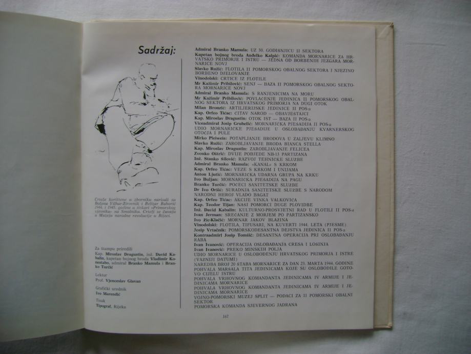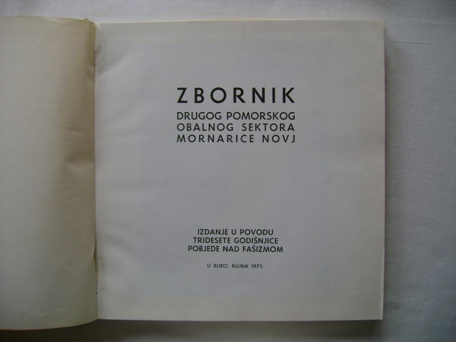 Zbornik drugog pomorskog obalnog sektora mornarice NOVJ - izdanje u povodu tridesete godišnjice pobjede nad fašizmom, tisak Tipograf, Rijeka 1975. godine, 24 x 24 cm, tvrdi uvez, 167 stranica, bogato ilustrirano.
