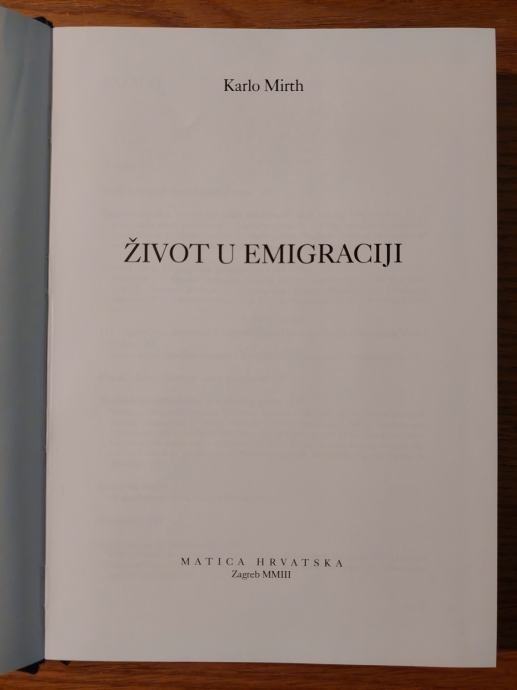 Život u EMIGRACIJI - Karlo MIRTH / Urednica : Jelena HEKMAN