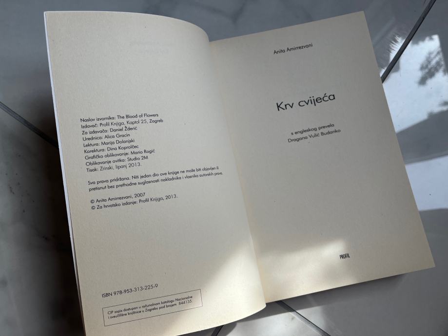 Nadahnuta prekrasnim srednjovjekovnim perzijskim bajkama i pisana prozom koja poput rijeke Zindeh teče kroz Isfahan, «Krv cvijeća» je roman o borbi jedne žene da stvori život prema vlastitu izboru, oslanjajući se, unatoč svim poteškoćama, na snagu svojih ruku, uma i volje.