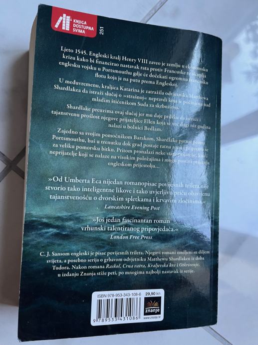 C. J. Sansom engleski je pisac povijesnih trilera. Njegovi romani omiljeni su diljem svijeta, a posebno serija o grbavom odvjetniku Matthewu Shardlakeu iz doba Tudora. Nakon romana Raskol, Crna vatra , Kraljevska krv i Otkrivenje, u izdanju Znanja stiže posljednji, po mnogima najbolji nastavak iz serije.