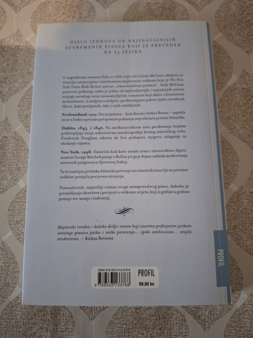 Colum McCann: TRANSATLANTIK, izdavač Profil, meki uvez, 260 stranica, u odličnom stanju, cijena 12 EUR. Ne prodajem preko PayProtect. Info na 0917912699.