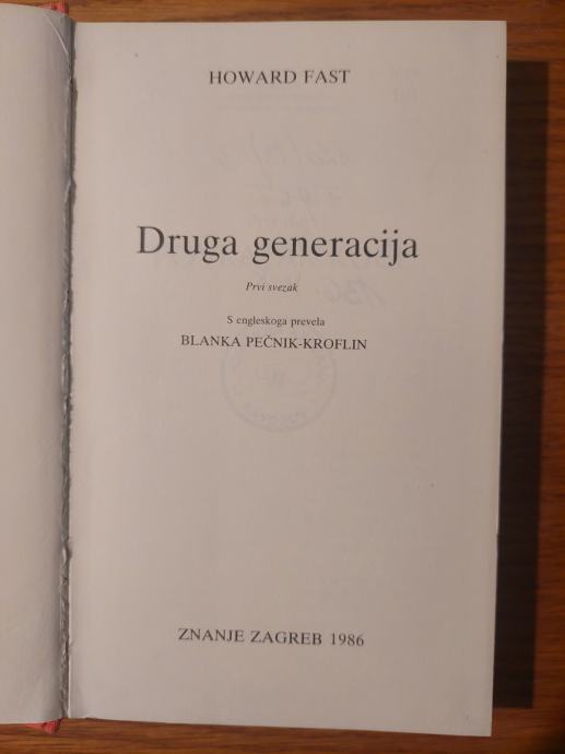 DRUGA generacija I - Howard FAST / Prevela : Blanka PEČNIK KROFLIN