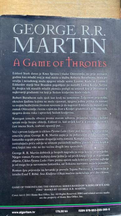 GEORGE R.R. MARTIN:IGRA PRIJESTOLJA, PJESMA LEDA I VATRE KNJIGA PORVA
