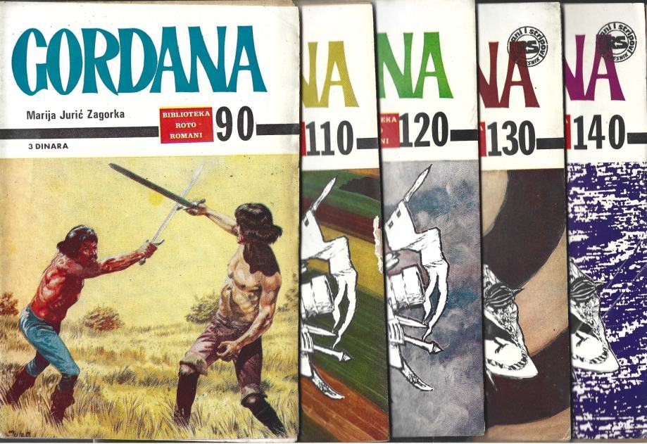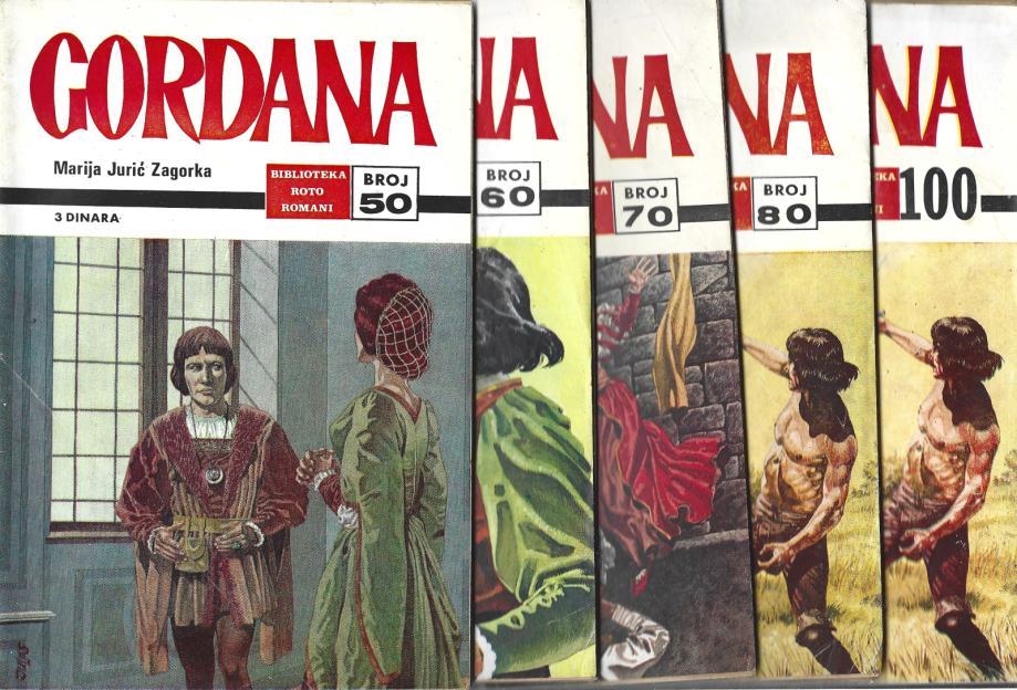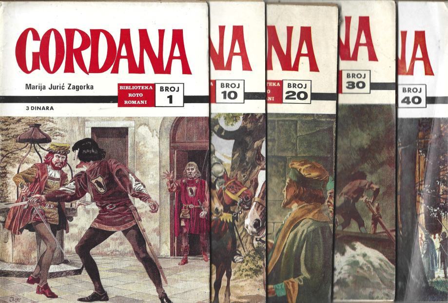 Marija Jurić Zagorka: Gordana – izdanje u 140 malih knjižica (ukupno 6720 stranica); izlazilo u nastavcima od 1973. do 1976. godine. Odlično uščuvane knjižice, ali nažalost nedostaju neke od knjižica, izgubljene tijekom gotovo 50 godina. Nedostaju brojevi: 35, 54, 73, 79, 85, 87, 114, 115, 117, 118, 122, 131. Cijena je za čitav ponuđeni komplet, ali na upit mogu i pojedinačni brojevi.