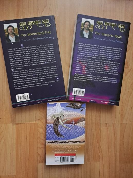Prodajem drugu i treću knjigu serijala Fionavarska tapiserija na hrvatskom jeziku i prvu knjigu serijala na engleskom isključivo u kompletu.