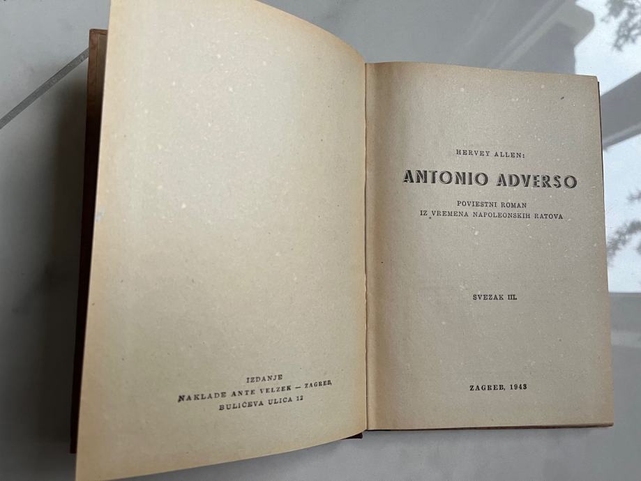 Hervey Allen, ANTONIO ADVERSO: poviestni roman iz vremena napoleonskih ratova