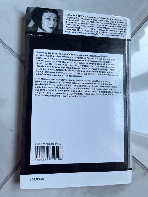 Julya Rabinowich rođena je u Petrogradu. S roditeljima 1977. emigrira u Beč. Studira na Bečkom sveučilištu, gdje je diplomirala slikarstvo i filozofiju. Od 2006. radi kao simultana prevoditeljica u sklopu psihoterapeutskih seansi s izbjeglicama. Godine 2009. Dobiva Raurišku književnu nagradu i nagradu MiA za roman Spaltkopf/ Rascijepljenost, a 2010. i 2012. dobitnica je prestižne stipendije grada Beča Elias Canetti. Napisala je nekoliko dramskih tekstova i eseja i još dva romana: Herznovelle (2011) i Die Erdfresserin (2012). Knjiga je nagrađena nagradom za promicanje suvremene austrijske književnosti Albert Goldstein za 2013. godinu.
