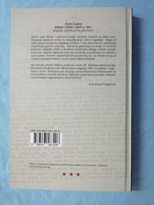 Adam Dupalo – Banija i Sisak u NOP-u 1941 : događaji, svjedočanstva, dokumenti