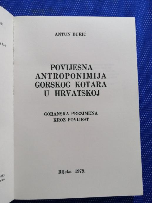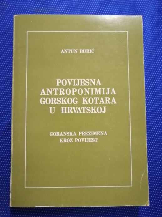 Antun Burić – Povijesna antroponimija Gorskog kotara u Hrvatskoj : Goranska prezimena kroz povijest