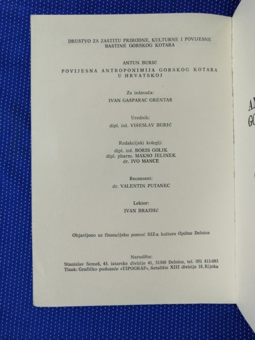 Antun Burić – Povijesna antroponimija Gorskog kotara (B106)