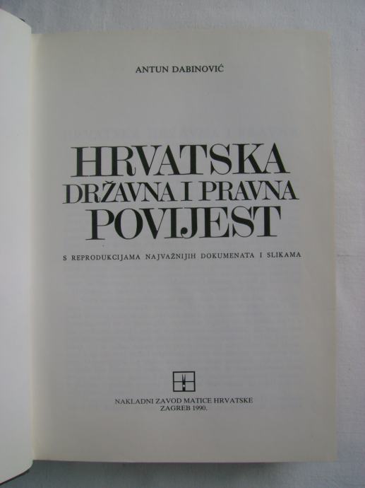 Antun Dabinović - Hrvatska državna i pravna povijest - Nakladni zavod Matice hrvatske, Zagreb 1990. godine, 17 x 24 cm, tvrdi uvez i papirnati omot, 569 stranica.