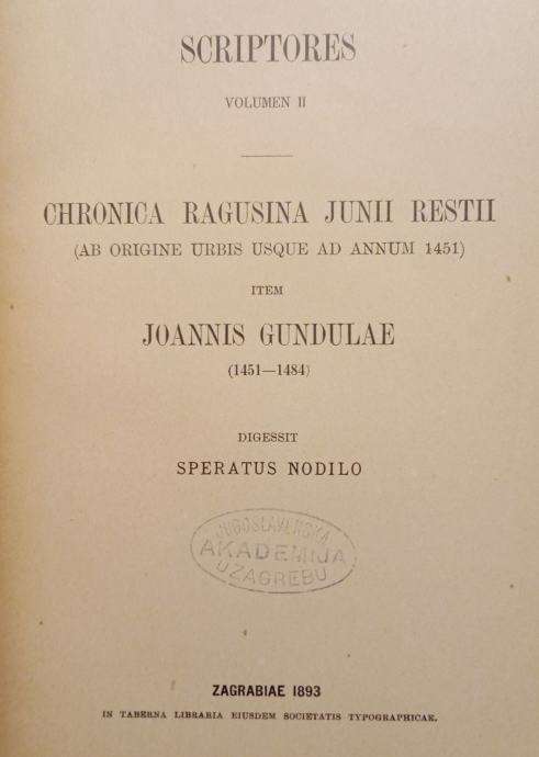 Chronica Ragusina Junii Restii. Joannis Gundulae (1451-1484)