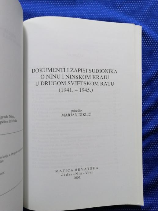 Marjan Diklić – Dokumenti i zapisi sudionika o Ninu i Ninskom kraju u Drugom svjetskom ratu (1941.-1945.)