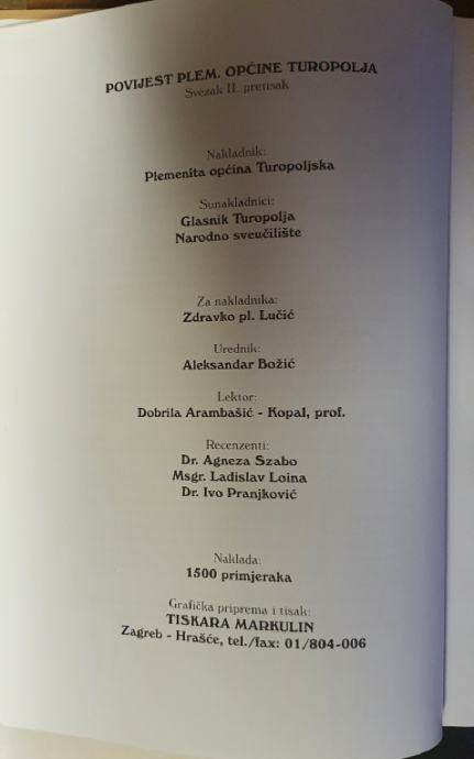 Pretisak znamenite povjesnice Turopolja. Autor daje cjelovit uvid u višestoljetnu povijest uprave, prirodna obilježja, kulturu i civilizaciju Turopolja.