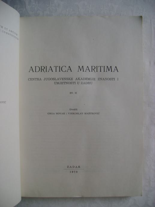 Grga Novak / Vjekoslav Maštrović - Adriatica Maritima Centra JAZU u Zadru, br. 2, 17 x 24 cm, meki uvez, 271 stranica, ilustrirano.