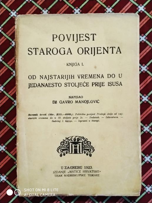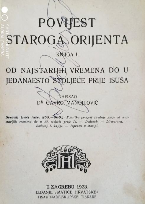 Gavro Manojlović: Povijest starog orijenta. I.dio. 1923.god.