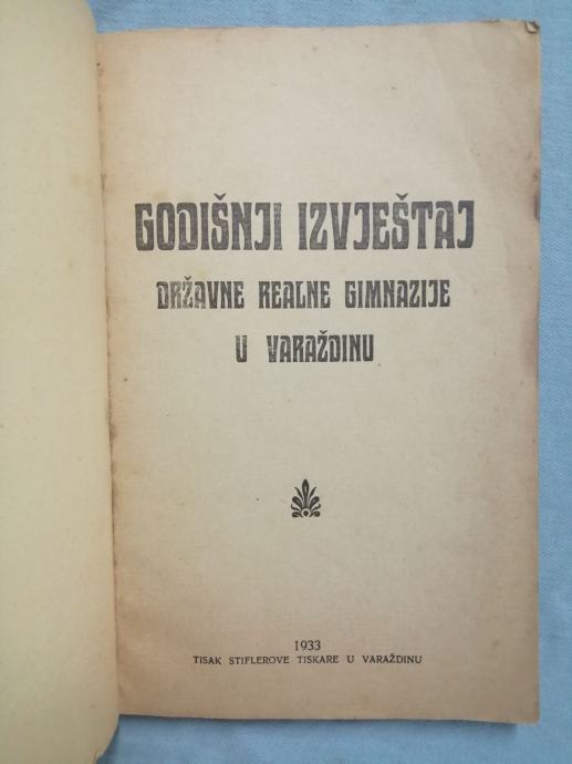 Godišnji izvještaj Državne realne gimnazije u Varaždinu