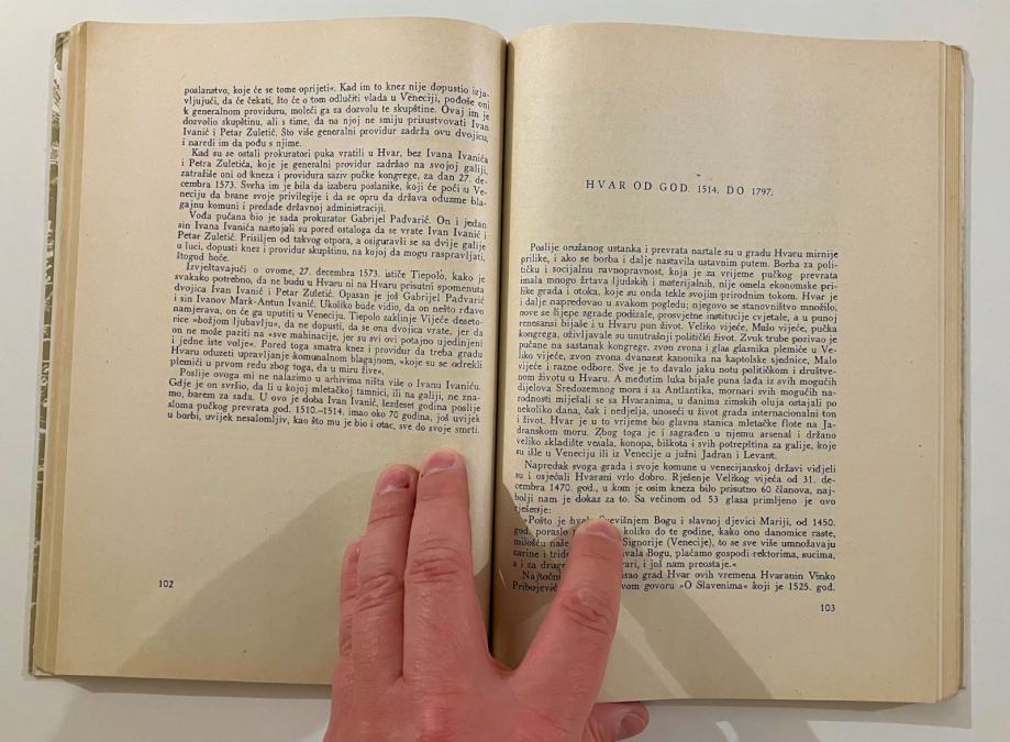 Knjiga o povijesti otoka Hvara od pretpovijesnog razdoblja, preko grčke kolonizacije, rimske vladavine, doseljavanje Hrvata, razdoblje kroz srednji vijek, do talijanske okupacije 1922. godine.