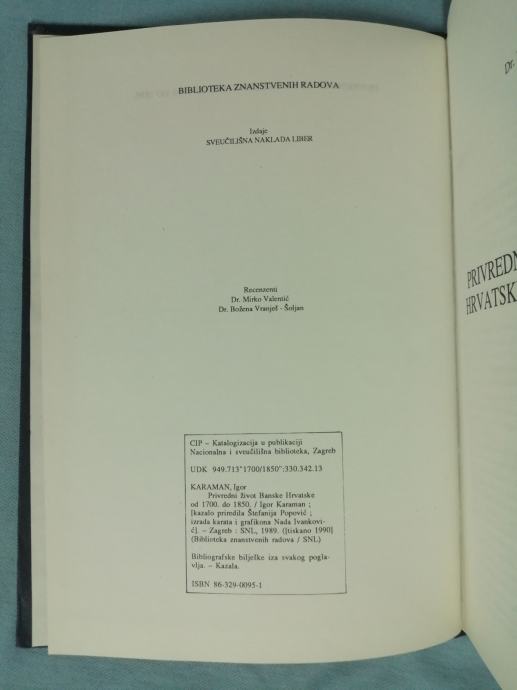 Igor Karaman – Privredni život Banske Hrvatske od 1700. do 1850.